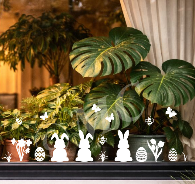 De basis maat zoals getoont op het voorbeeld met alle figuren is 60 cm breed en 20 cm hoog (konijn 12 cm hoog). Kies je voor de xl maat dan is het 75 cm breed en 25 cm hoog (konijn 15 cm hoog). De uiteindelijke maat is natuurlijk afhankelijk van hoe ver je de afbeeldingen uitelkaar plaatst.