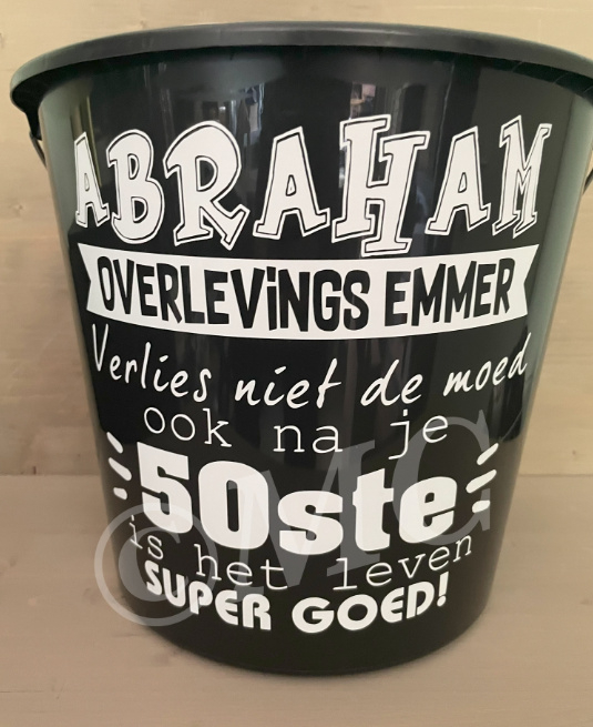 OverzichtLeuke sticker om op een emmer te plakken voor iemand die 50 word