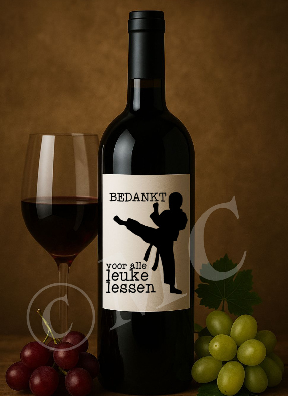 Wijnfles etiketten: Deze worden in het zwart geprint op een wit papieren etiket. De maat van dit etiket is 104mm breed en ca 140mm hoog. Mocht dit te hoog zijn geef dit dan aan bij de opties dan kan het etiket maximaal 3 cm korter gemaakt worden.